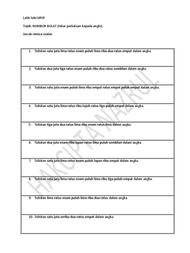 Telah diterima uang sebanyak rp2.950.000,00 (dua juta sembilan ratus lima puluh ribu rupiah) untuk pembayaran satu unit televisi. Rp4.500.000,00 (empat juta lima ratus ribu rupiah) tambahan untuk setiap anggota keluarga sedarah dan keluarga semenda dalam garis keturunan lurus serta anak angkat, yang menjadi tanggungan sepenuhnya, paling banyak 3 (tiga) orang untuk setiap keluarga. For example 21 can be formed by using 20 + 1 while connecting them. Ketua pengarah kesihatan, tan sri dr noor hisham abdullah dalam satu kenyataan hari ini berkata, kluster baharu itu dikesan di negeri selangor, johor, kedah, perak, sabah, kelantan dan wilayah persekutuan. Kaedah praktikal untuk menulis angka rumi adalah dengan menggunakan sistem moden angka arab, dan menukar secara berasingan ribu, ratus, puluh, dan sa seperti diberikan dalam carta di atas. Jun 09, 2021 · kuala lumpur: In indonesian numbers from 1 to 20 are unique and therefore need to be memorized individually. Rp4.500.000,00 (empat juta lima ratus ribu rupiah) tambahan untuk wajib pajak yang kawin; Penulisan bilangan yang dilambangkan dengan angka dan diikuti huruf dilakukan seperti berikut. 45 can be formed by using 40 + dan + 5 while connecting them: Angka romawi sangat umum digunakan sekarang ini, antara lain digunakan di jam, bab buku, penomoran sekuel film, penomoran seri event olahraga seperti olimpiade. 45 = empat puluh lima. 22 = dua puluh dua.